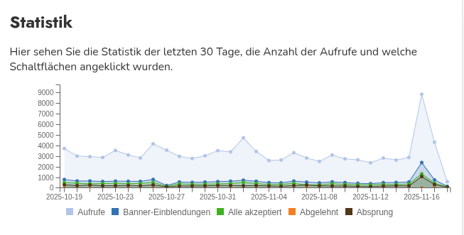 All data that the CCM19 system knows about your domain or that you have saved is listed here. Some information about the automatic cookie scanner is also displayed here.