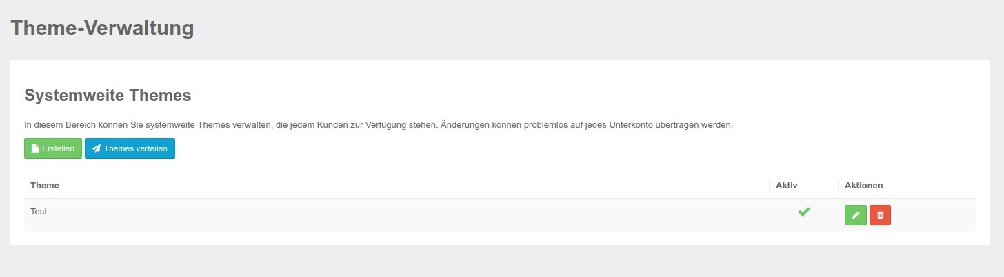 Under the "Themes" menu item, you can create new system-wide themes and display them for all customers. This means that these themes are available in all customer-accounts.