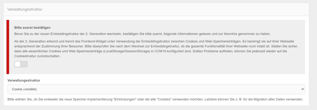With the release of version 13.10.2020, the CCM19 Cookie Consent Tool has been converted to display and process embeddings instead of using "only" cookies.