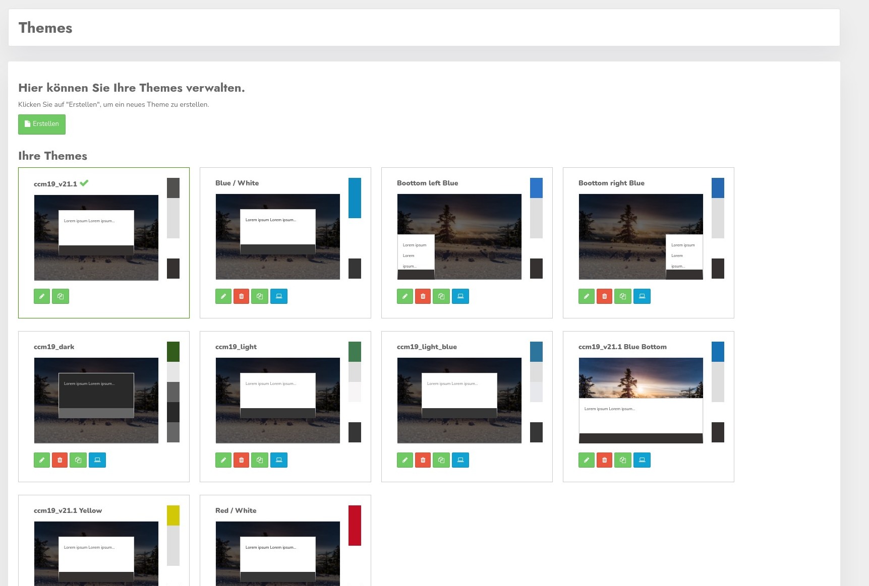 If you click on the "Themes" menu item, you will first see an overview of the existing themes.