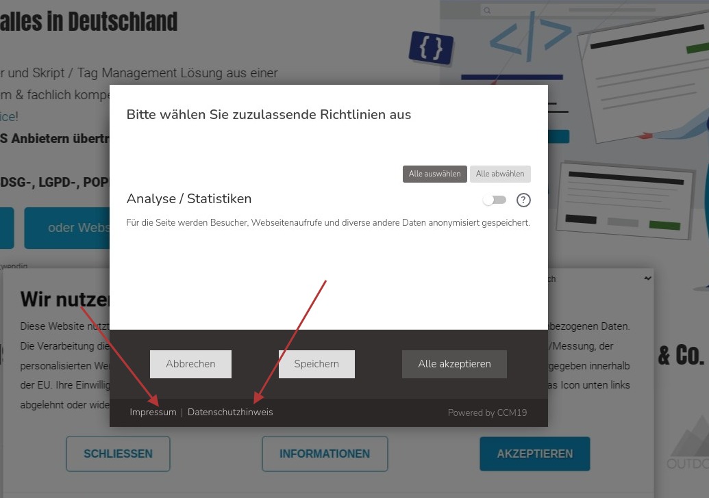 Blocking means that - as can be seen in the screenshot - the page is darkened and blocked in the background. Only when a visitor has definitely decided whether or not to accept the cookies will they be allowed to access the page.