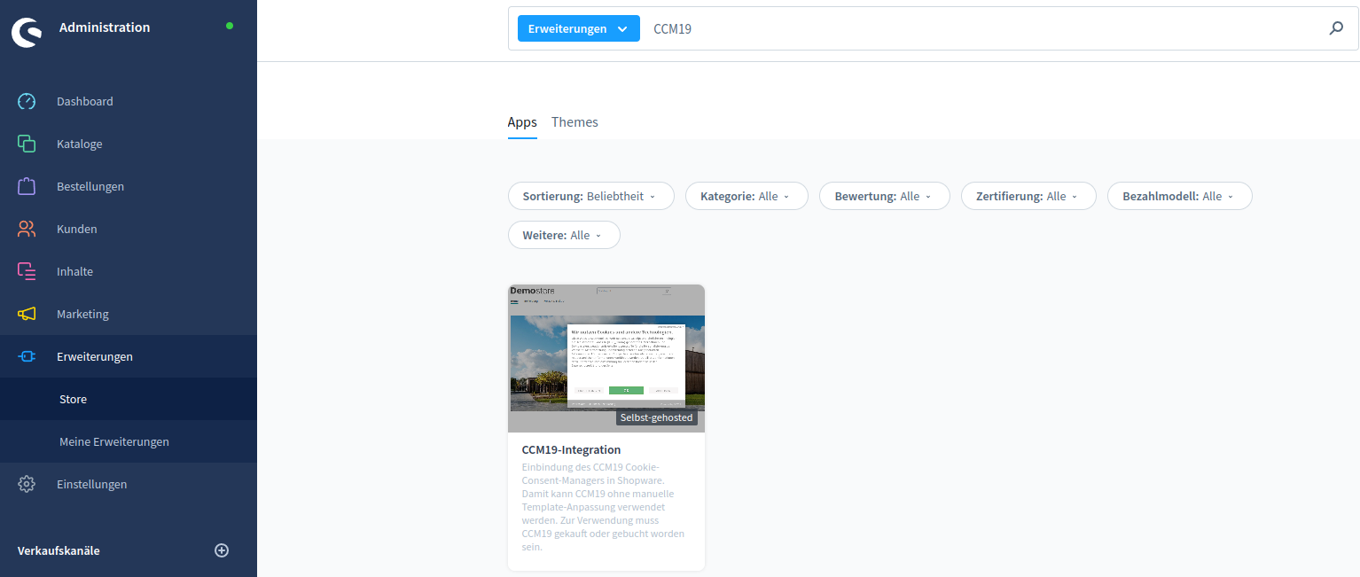 Important:Please do not deactivate the Shopware-Cookie-banner via the settings. This enables the cookie-management and the communication with marketing-plugins within Shopware 6. CCM19 will automatically hide the still active Shopware-cookie-banner, so that full functionality is guaranteed.