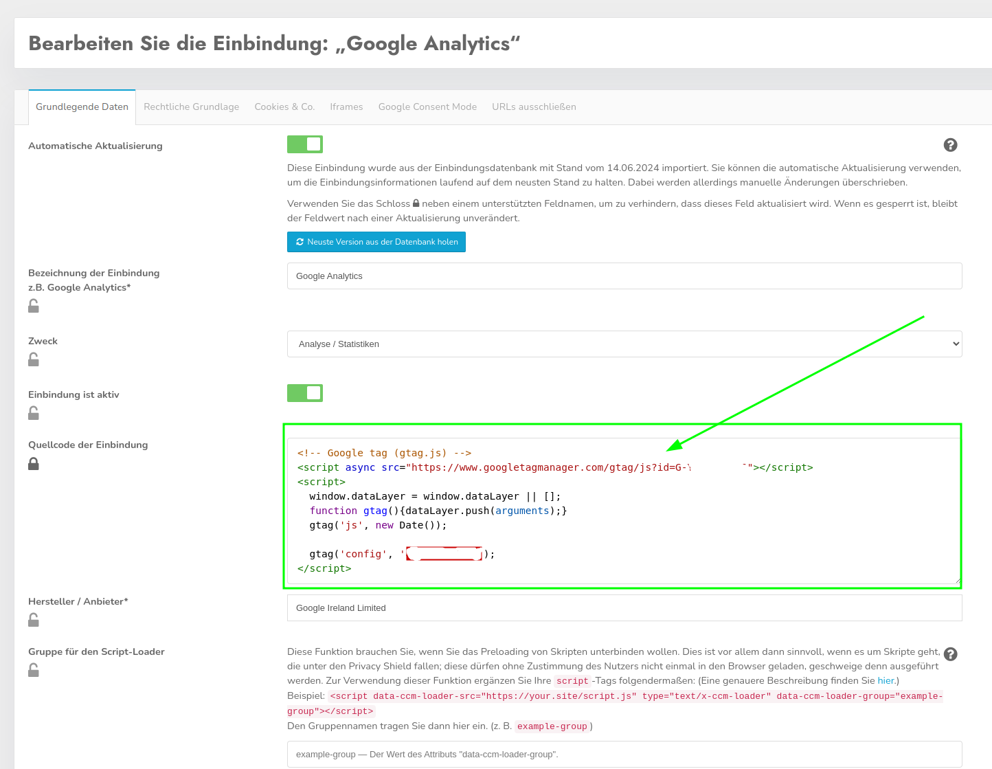 Another way to optimize the loading speed is to load external scripts such asGoogle Analyticsdirectly via CCM19. The script is removed from the source code of the page and stored in CCM19 instead, so that it is not loaded every time the page is accessed, but only if the page visitor has given their consent. As this significantly reduces the number of scripts on the page, the page can be loaded more quickly. The scripts are only integrated if they are allowed to be used on the basis of the consent-decision.