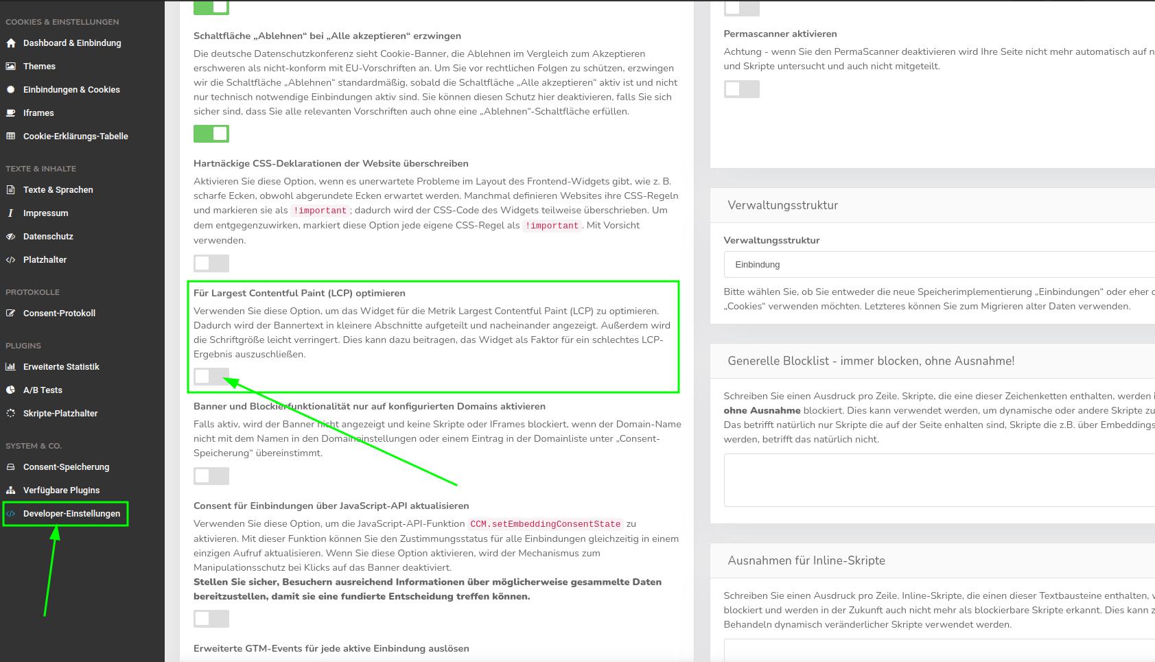 3. further optimization options in the CCM19-backend